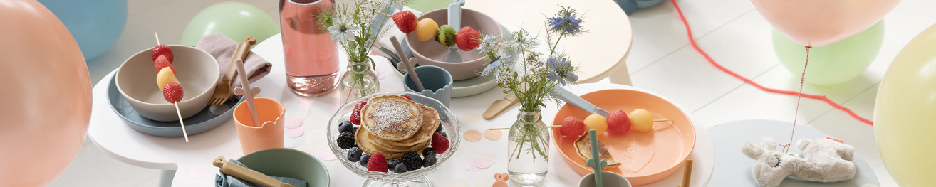 Kun lapsen on aika alkaa syödä itsenäisesti, se on suuri ja tärkeä tapahtuma lapsen elämässä. Uusi virstanpylväs on saavutettu, ja omat ruokailuvälineet, kuppi ja oma lautanen, josta syödä, ovat erittäin tärkeä tapahtuma pienen lapsen maailmassa. Ateria-aika on myös hieman hauskempi värikkäällä mukilla, hauskoilla ruokailuvälineillä ja lautasella, jossa on hauskoja hahmoja, joista voi syödä ja joita voi katsella aterian aikana. Useimmat lautaset ja mukit on valmistettu kestävästä, astianpesukoneessa ja mikroaaltouunissa käytettävästä melamiinista. Nautinnollisempi kokemus Oman mukin ja juoman saaminen itse tarttuvilla kahvoilla ja roiskevapaalla nokalla on lapsen itsensä mukaan yksi mukavimmista asioista, mitä voi saada! Ylpeys loistaa silmistä, ja totta kai osa ruoasta päätyy välillä lautasen ulkopuolelle, mutta pelkkä mahdollisuus päättää itse, mitä suuhunsa laittaa, on sittenkin vaivan arvoista. Lautaset, joissa on tuttuja hahmoja tai kirkkaita hauskoja värejä, tekevät aterioista hieman hauskempia ja koko kokemuksesta hieman miellyttävämmän lapselle. Valikoimassa on myös ruokailuvälineitä, joissa on helppokäyttöiset kahvat. Valikoimassamme on tunnettuja tuotemerkkejä, jotka on luonnollisesti testattu ja hyväksytty nykyisten turvallisuusstandardien mukaisesti.